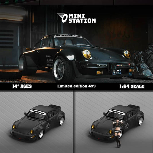 Mini Station x Time Micro 1/64 RWB964 GT Wing WildBody Samurai Cyberpunk Livery