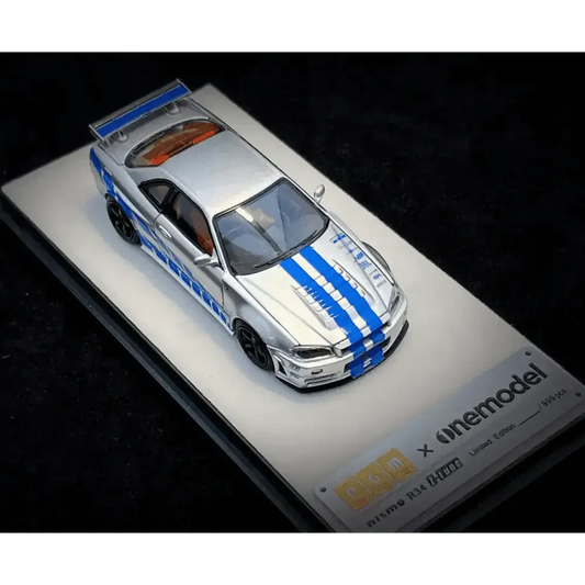 PGM 1/64 PGM Nissan Skyline GT-R R34 FNF Silver-Blue