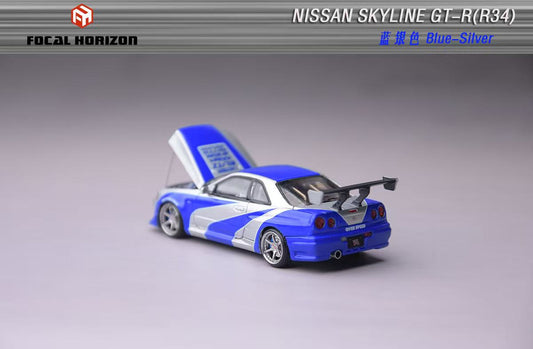 [ETA: Feb 2026 ] Focal Horizon 1/64 Skyline GT-R R34 C-West Customized NFS Silver Blue Livery