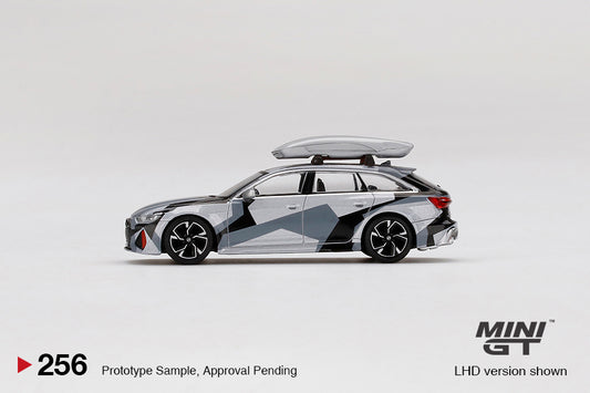 Mini GT 1:64 China Exclusive Audi RS 6 Avant Silver Digital Camouflage w/ Roof Box (box packaging)