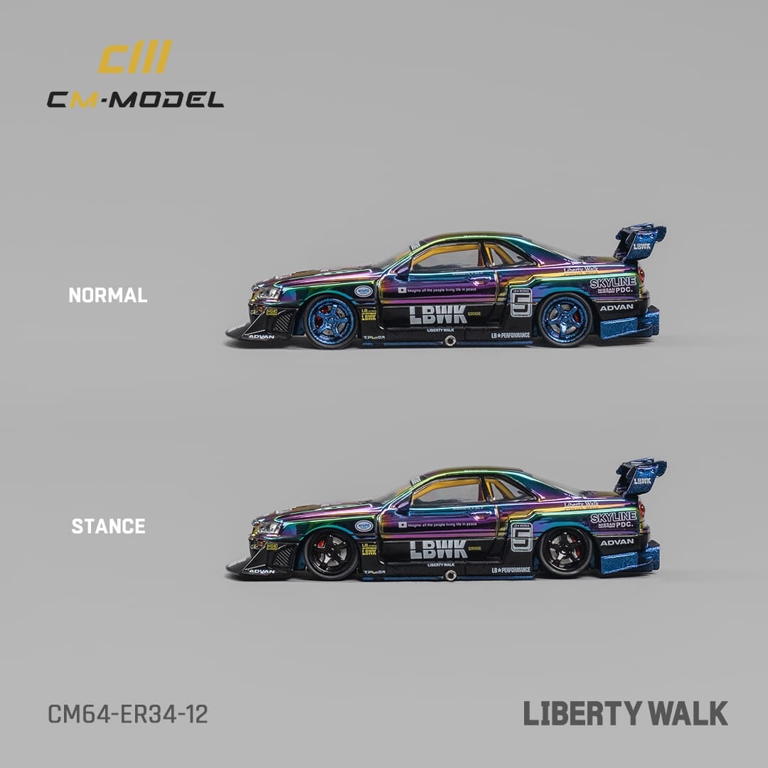 CM Model 1/64 Nissan LBWK Skyline GT-R R34 Super Silhouette ER34 Chrome Colors 5# Livery