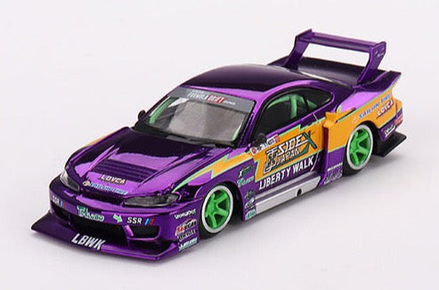 Mini GT 1/64 Nissan S15 SILVIA LB-Super Silhouette #555 2022 Formula Drift Japan – Chrome Purple ***in clamshell blisters***