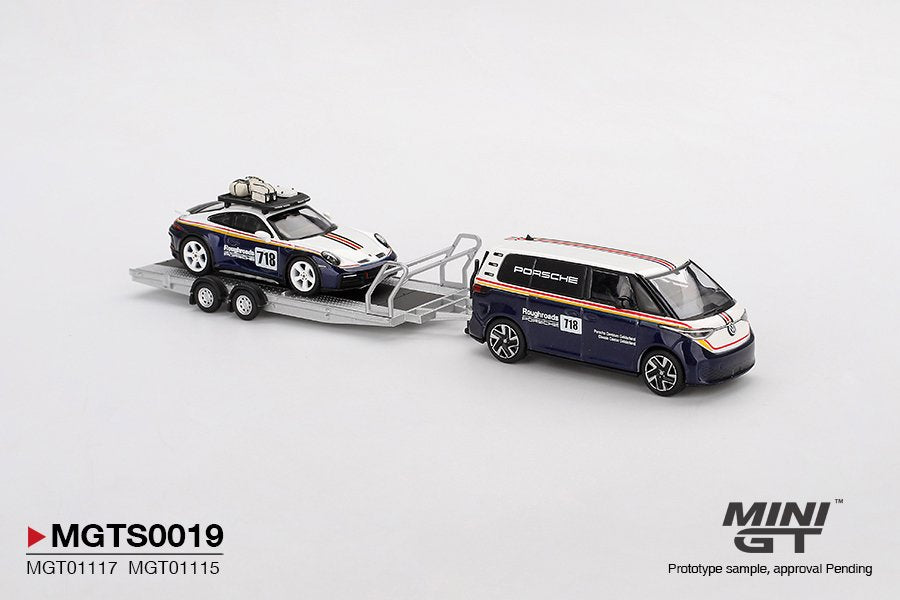 [ETA: Feb 2026 ] Mini GT 1/64 Porsche 911 Dakar #718 with Volkswagen ID. Buzz Porsche Centrum Gelderland Roughroads Set