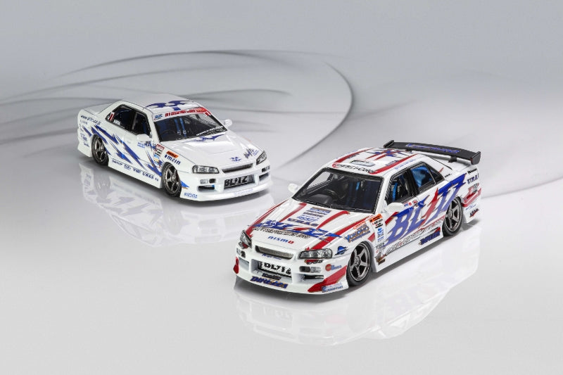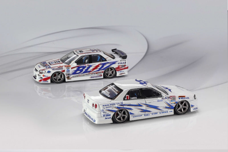 Mortal 1/64 Skyline ER34 25GT-Turbo Drift Version - D1GP Blitz Drift Livery - Twin Cars Set - Blitz ER34 2003 & 2006 Version