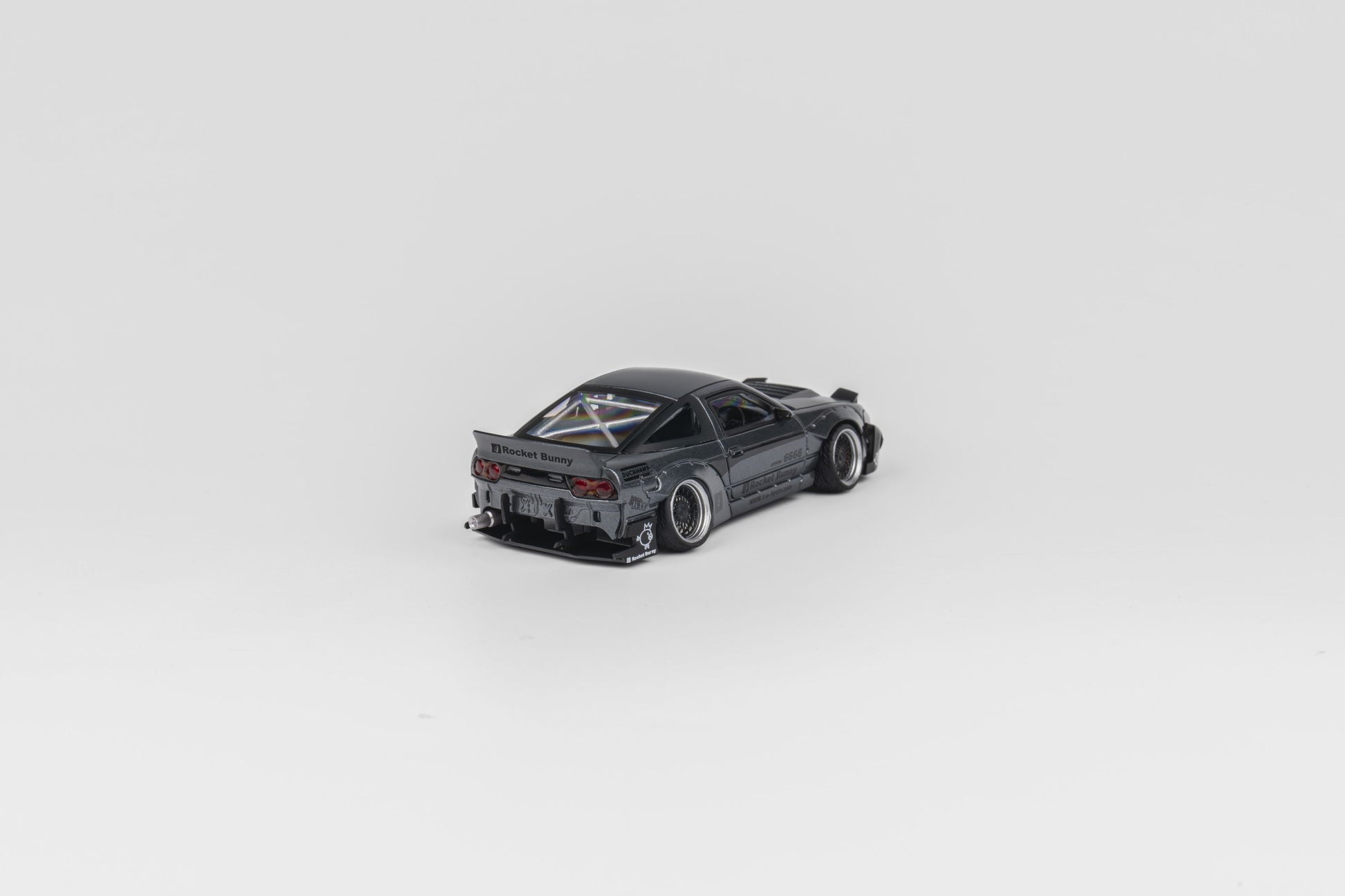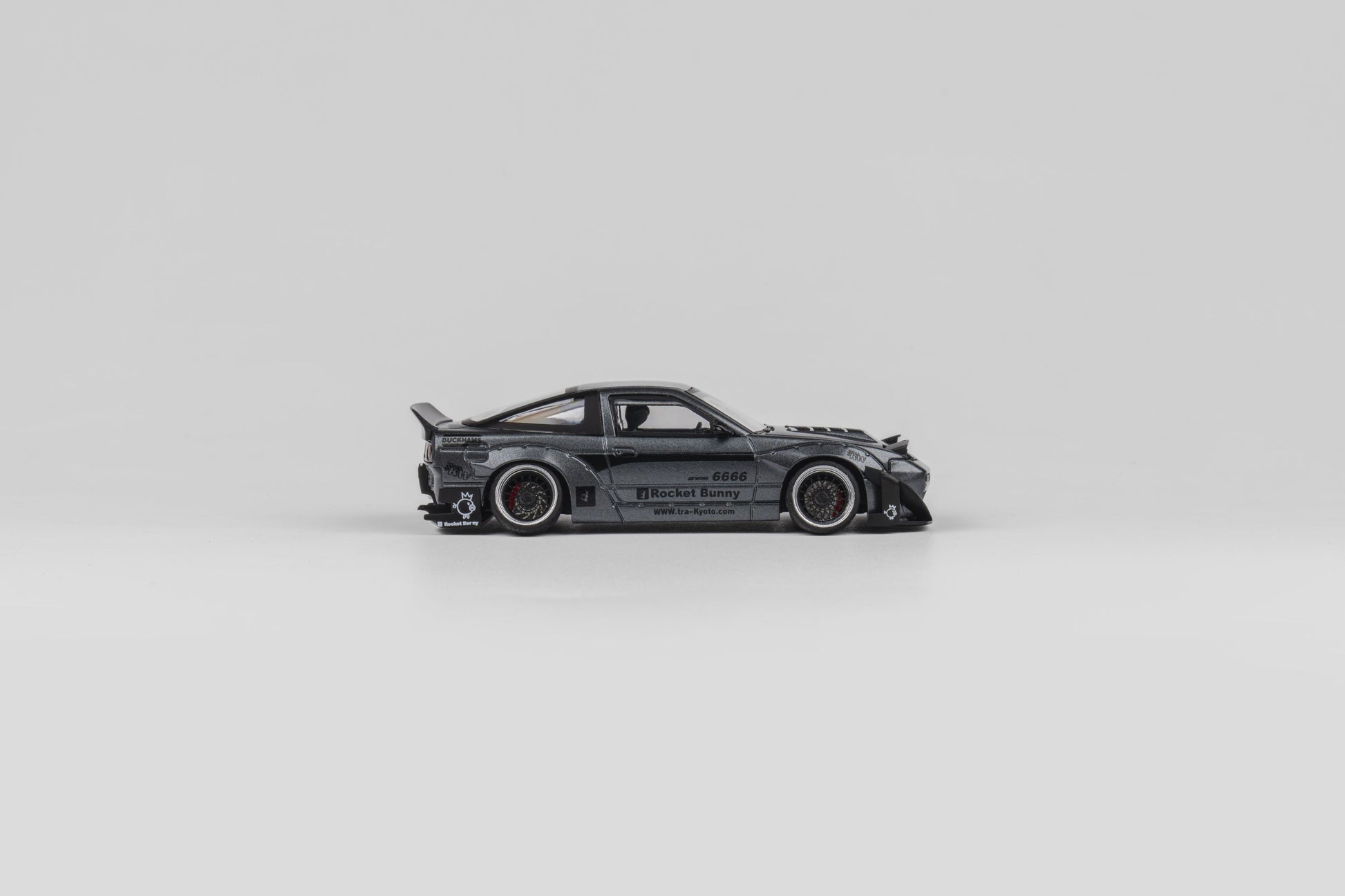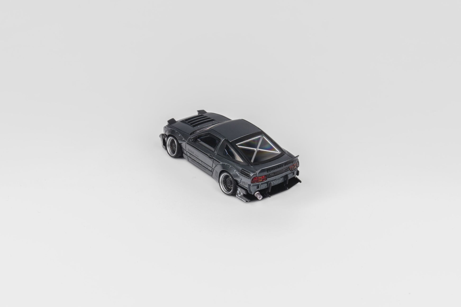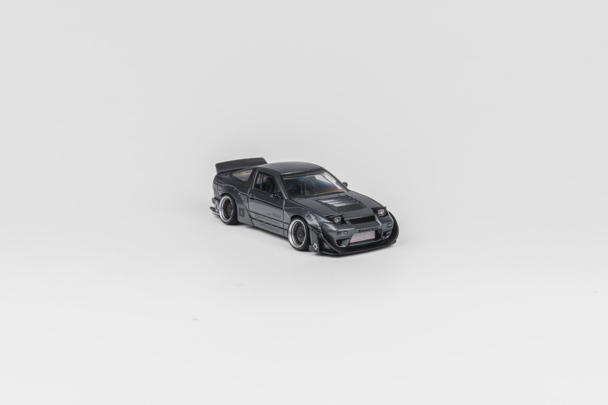 MicroTurbo 1/64 S13 Silvia 180SX Pandem Rocket Bunny Modified - Matte Grey (Retractable-Headlight, Visible Engine)
