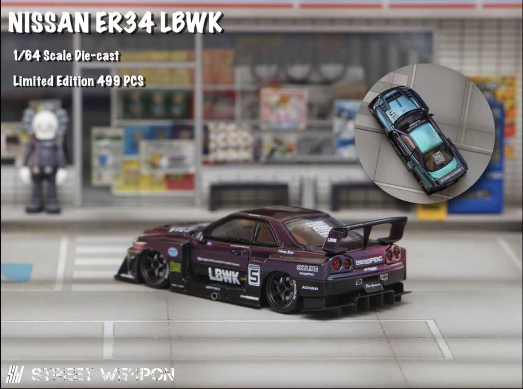 Street Weapon 1/64 Skyline GT-R R34 LB, Super Silhouette ER34 (Open-Hood, Visible Engine)